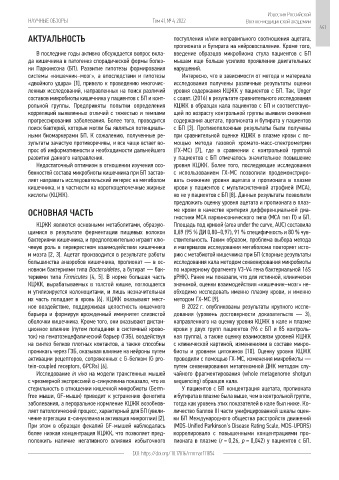 ными биомаркерами БП. К сожалению, полученные ре- при сравнительной оценке КЦЖК в плазме крови с по-