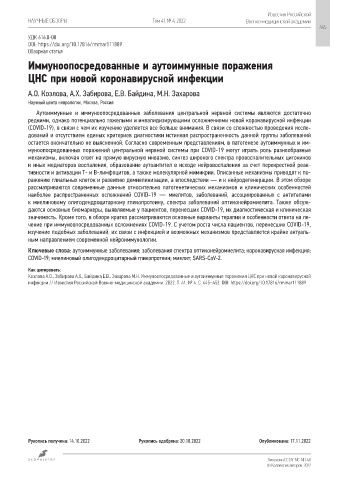 Козлова А.О., Забирова А.Х., Байдина Е.В., Захарова М.Н. Иммуноопосредованные и аутоиммунные поражения ЦНС при новой коронавирусной