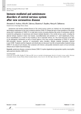 Kozlova AO, Zabirova AKh., Baydina EV, Zakharova MN. Immune-mediated and autoimmune disorders of central nervous system after new